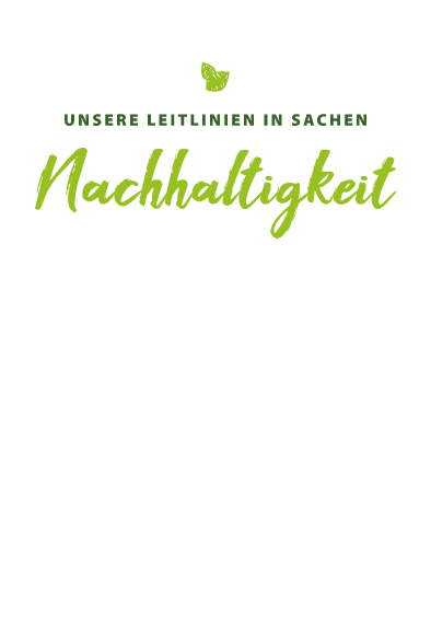 Wir lieben es, Mensch und Natur wertzuschätzen. Deshalb gehen wir verantwortungsvoll mit den Ressourcen um! Wir orientieren uns an den Leitlinien aus den Bereichen Ökologie, Ökonomie und Soziales und überprüfen in Kooperation mit unseren Partnern regelmäßig die Betriebe und Prozesse, um nachhaltige Lösungen zu etablieren.